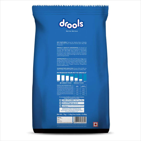 Enhanced Palatability:ย With added flavours and natural ingredients, Drools Ocean Fish Adult Cat Dry Food is highly palatable, ensuring that your cat enjoys every meal.