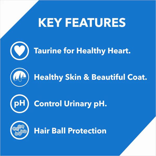 Taurine-Enriched:ย Taurine is crucial for maintaining healthy vision and heart function, ensuring your cat stays active and healthy.