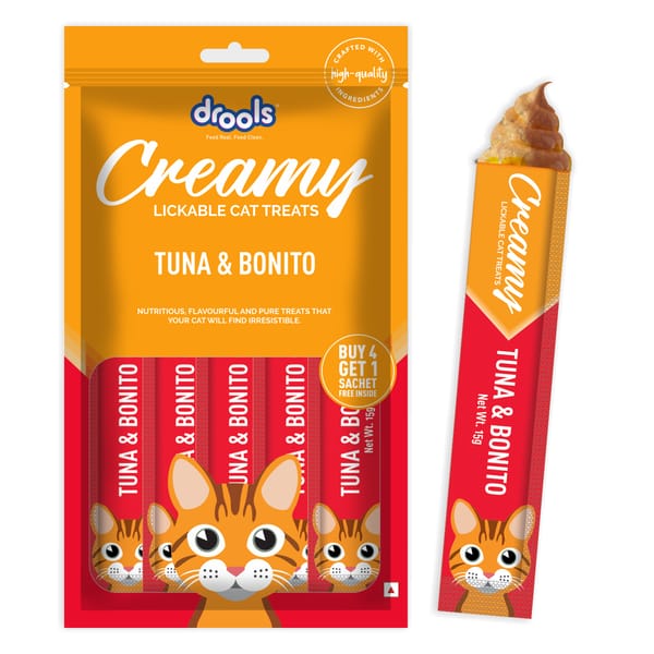 Indulge your feline friend with Drools Tuna & Bunito Creamy Cat Treats, a premium choice for discerning cats. Crafted with high-quality ingredients, these treats are designed to delight your cat's taste buds while supporting their overall health. Enriched with tuna and bunito, they offer a delectable flavour that cats love, making snack time an enjoyable experience. Perfect for rewarding good behaviour or simply showing your love, Drools Tuna & Bunito Creamy Cat Treats are a must-have for any cat owner seeking a top-tier treat.