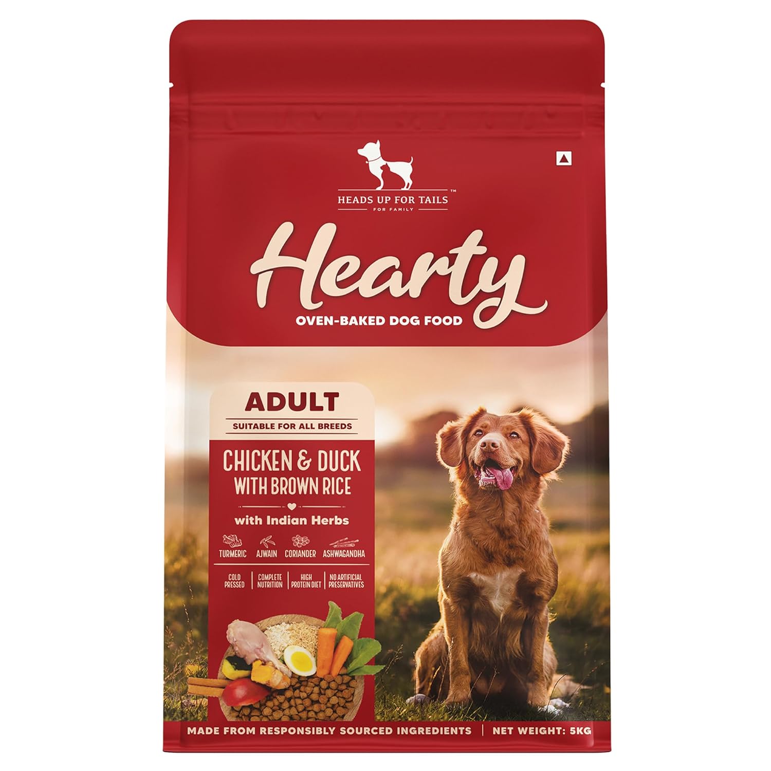 Hearty by HUFT Adult Dry Dog Food | Oven-Baked Chicken & Duck with Brown Rice All Breeds | Complete & Balanced Food for Adult Dogs | No Corn, Soy, GMO or Added Flavours