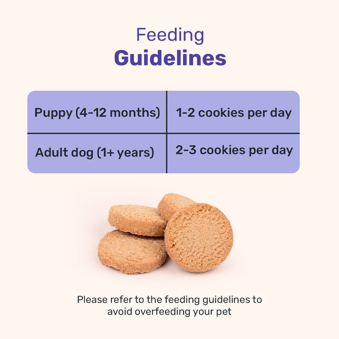 These biscuits are made with only 100% real, human-grade ingredients like chamomile, lavender, oat flour and rice flour, along with lots of love and care! With organic jaggery, goat milk, ghee and coconut oil, these limited edition biscuits have the goodness of all that is loved by pets and approved by pet parents!