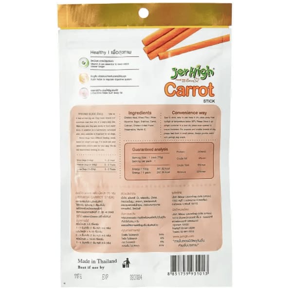 JerHigh Carrot Stick is made from real chicken meat and has been meticulously prepared by our highly experienced expert team. It has been researched and tested in the laboratory to ensure that the treat is hygienic, safe, and filled with all of the nutrients man's best friend needs to stay healthy and happy. You can rest assured that JerHigh Carrot Stick is the perfect reward that your favorite canine deserves.
