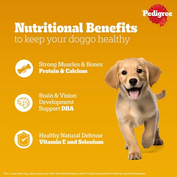 Complete and balanced Dog Food:ย Pedigree Wet Dog Food is a 100% complete & balanced meal for Puppies.