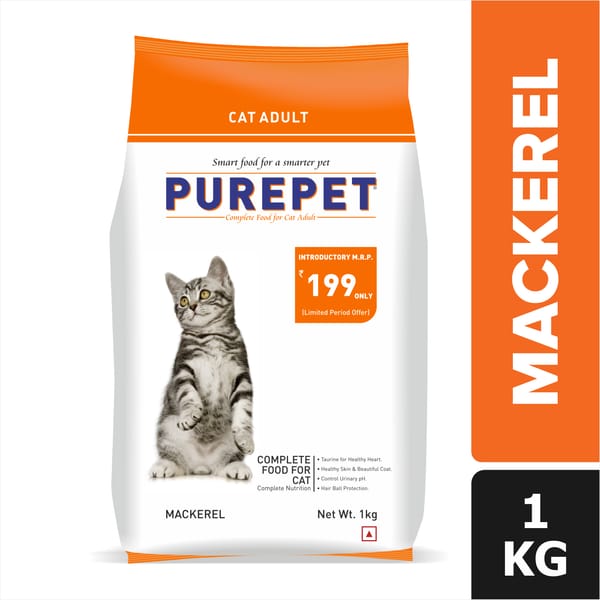 PUREPET Mackerel Adult Cat Food is formulated to be a comprehensive and balanced nutritional solution for your adult feline companion. It provides all the essential nutrients adult cats need to thrive, including protein for building and maintaining muscle mass, healthy fats for energy, vitamins and minerals for overall health, and taurine, an essential amino acid that plays a vital role in heart health and vision in cats.ย