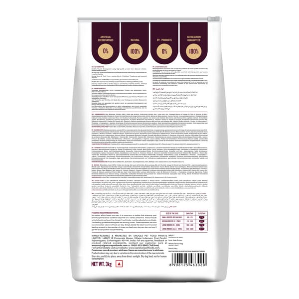 Directions to Use: 100 - 170gms for Small Breeds(BELOW 10KG), 170-300gms for Meduim Breeds (11-25kg), 300-500gms for Larch Breeds (26-45kg),500-1000gms for Larch Breeds (Above 46kg).