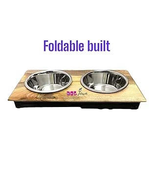 Elevated dog bowl stand with dual stainless steel bowls for food and water