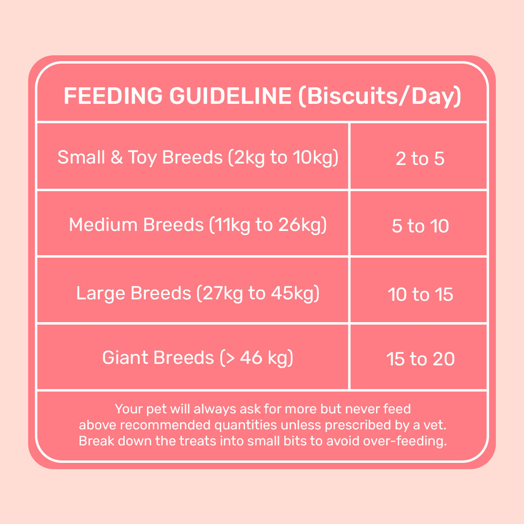 These vegetarian biscuits are gently oven-baked to retain maximum vitamins, minerals, antioxidants and anti-inflammatory properties from the nutrient-rich ingredients. Being bite-sized and easy to digest, they are the perfect low-calorie training treats. There are 10+ Yummy In My Tummy dog biscuits to choose from-a variety loved by pets and approved by pet parents!